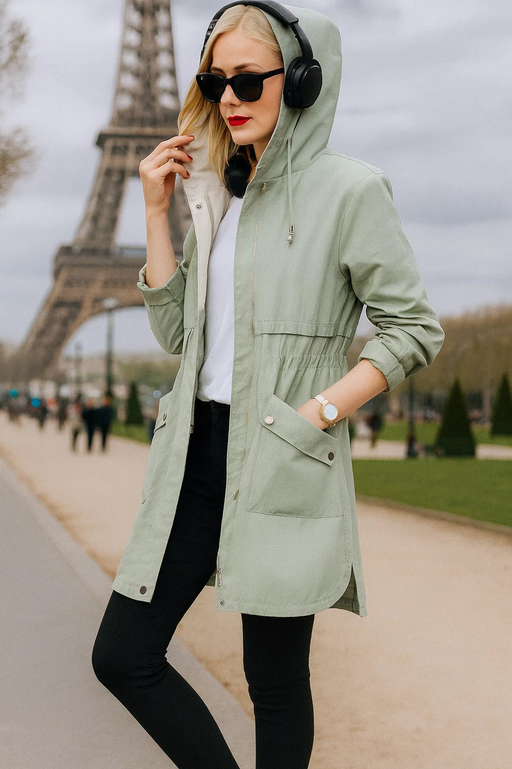 Hoally présente la parka mi-saison qui allie silhouette féminine et esprit urbain : coupe midi légèrement évasée, taille ajustable par cordon intérieur et capuche bordée douce. Cette création Hoally est l’incarnation du chic décontracté que l’on porte partout sans jamais se lasser.
